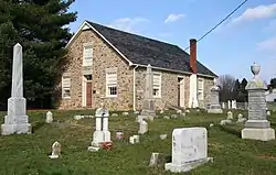 The Wesley Chapel Methodist Episcopal Church in Eldersburg, Maryland is a characteristic small church of the period (built ~1822), with uncoursed stone rubble construction and a simple plan. The interior is a single barrel-vaulted room. It was erected to serve one of the earliest Methodist congregations in Carroll County, and hence in the United States, as Carroll County was a birthplace of Methodism in America.[2]