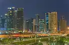 ![]() ![]() ![]() Clockwise from top: view from a boat of West Bay's skyline; dark clouds over the West Bay skyline; and overlooking skyscrapers in the Al Dafna district of West Bay | |