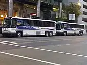 Until 30 December 2016, the West Coast Express ran coach-style "TrainBus" service, which provided additional service when trains were not running. The TrainBus service provided two buses, one from Port Haney station in Maple Ridge and one from Mission City station, to Vancouver in the morning (after all westbound trains had departed) and five buses eastbound (two mid-day, and three after all eastbound trains had departed Waterfront), three of which extended to Mission, stopping only at West Coast Express stations.[7] This service was replaced by the 701 bus service.
