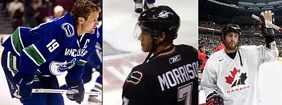 Markus Näslund (left), Brendan Morrison (centre), and Todd Bertuzzi (right) formed the "West Coast Express" line.