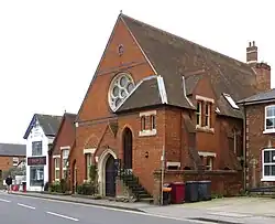 The Hall was the original Baptist church in Caversham, and its construction was mostly funded by the Reverend Ebenezer West, principal of Amersham Hall. West also funded most of the cost of building the new Caversham Baptist Free Church a decade later, also by Waterhouse, which stands on the opposite side of the road. After the new church opened, the Memorial Hall was used as a school.[2] In 1911 it was extended "...to find rooms for wholesome recreation and moral improvement for the young men of Caversham, and to increase the space available for religious teaching on Sundays in connection with the Caversham Free Church, of which the late Mr Ebenezer West was so generous a supporter."[6]