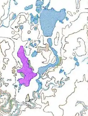 The lake's maximum depth is 136 feet (41 m), making it the deepest lake in Iowa and second in size only to Spirit Lake. The mean depth is 39 feet (12 m). The drainage area of the lake is approximately 125 square miles (320 km2).[8]