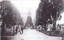 In about 1870 the two chapels were built, one for Church of England services and the other for Nonconformist services.[2] The cemetery came under the control of the Joint Burial Committee in 1895 and Farnham Council on 27 July 1926. In 1947 an additional area of 16.2 acres was obtained of which 9.6 acres were turned over to the Cemetery for use as an additional area for burials. This new burial ground is beyond a vintage brick wall which bisects the two halves of the cemetery. A report in 1947 records that common graves with a single burial at 6 ft could be reused after about 14 years. After passing into the hands of Waverley District Council it was transferred to Farnham Town Council in 2006.[3][4]