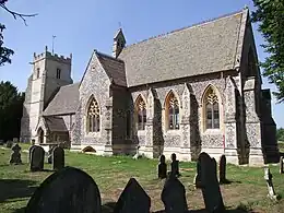 St Mary's Church is a Grade I listed building[4] with chancel and south chapel designed by A. W. N. Pugin c.1850 for the Rev. Augustus Sutton. The village was emparked in the 18th century.[5] Records dating back to 1391 indicate human settlement at West Tofts.[6] Earthworks at West Tofts indicate the presence of a former rectory or similar country house along with its gardens and parkland. Built before 1797, the West Tofts country house was constructed to replace Caston Hall. It subsequently became the rectory, but was demolished after the Second World War, though a wall dating from the 19th century, used as part of its vinery, is still standing.[5]