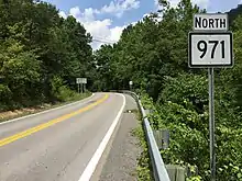 West Virginia Route 971 is a 9.9-mile (15.9 km) northsouth state highway in Wyoming County, West Virginia. The route runs from West Virginia Route 97 in Baileysville north to West Virginia Route 10 in Oceana. It runs through mountainous, rural terrain, connecting Baileysville and Oceana to the communities of Clear Fork, Lillydale, and Lillyhaven. WV 971 has been the highest numbered state highway in West Virginia since July 2017, when WV 972 was decommissioned and absorbed by WV 93.