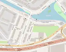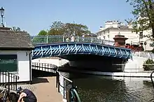 Westbourne Terrace Road runs between Blomfield Road in the north and Westbourne Bridge in the south. The north part of the road is a bridge over the Paddington branch of the Grand Union Canal in Little Venice known as Westbourne Terrace Road bridge. It is crossed by Delamere Terrace and Warwick Crescent in the north and joined by Blomfield Mews on its east side.