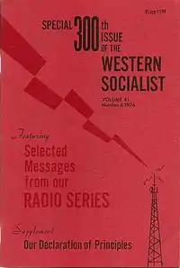 Western Socialist, Journal of Scientific Socialism in the Western Hemisphere was a regular magazine of the Socialist Party of Canada begun in 1903 then the Socialist Party of Russia (WSM) in 1933, becoming a joint publication with the World Socialist Party of the United States in 1939,[1][2] before reverting to the Socialist Party of Canada in the mid-1970s and ceasing publication in 1980. Both parties involved were companion parties of the World Socialist Movement and later went on to co-operate on the World Socialist Journal published between 1984-1985.