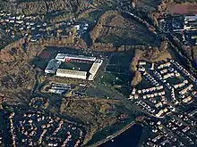 Westfield is an area of the town of Cumbernauld in Scotland. Westfield is a popular residential area originally built by Cumbernauld Development Corporation in the late 1970s and early 1980s (construction began 1975).[2] It comprises a residential area and a large industrial estate.[3] Historically there was a farm at Westfield as shown on Roy's map of the Lowlands[4] and the 1st 25 inch Ordnance Survey Map of Scotland.[5] It is located near Condorrat and Broadwood Stadium, home of Clyde FC. Historically, there were two local primary schools, St Francis of Assisi Primary School and Westfield Primary School. St. Francis of Assisi Primary School closed in 2009. The site has been re-developed by North Lanarkshire Council with new, high quality social housing available to rent. The new street is named Netherinch Way. Westfield also has other modern, private developments for example a new Bellway Housing development sits near Broadwood stadium along with a neighboring housing development. Westfield has a selection of frequent bus services to Airdrie, Cumbernauld Town Centre, Glasgow, Kilsyth and Kirkintilloch with buses operated by David Allan Coaches, First Group & McGills. In 2017 plans for a new retail park near Broadwood Studium were approved.[6]