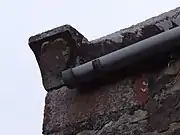 It is a two-storey house, with a relatively recent extension and external staircase on the left side of the building, whose overall dimensions are 55 ft. by 23 ft. There are four skew-puts (the cornerstone that supports the coping of a gable). The western one bears the heraldic heart of the Douglas family.[3]