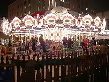 After the pavers were repaired and the Downtown Seattle Transit Tunnel was completed in 1990, Seattle City Council decided to keep Pine Street closed to through traffic,[15] making it effectively part of the park, and tying the park to the open area on the south side of the mall. However, Seattle citizens voted in 1995 to reopen the street, as part of a deal under which Nordstrom took over the flagship store of the former Frederick & Nelson department store chain, a city landmark half a block from the park.[16] In the mid-1990s Westlake Park was the site of a string of guerrilla art pranks led by Jason Sprinkle and the Fabricators of the Attachment, culminating in an infamous bomb scare incident that closed off several downtown blocks.[17]