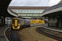 Weston-super-Mare railway station serves the seaside town of Weston-super-Mare in North Somerset, England. It is situated on a loop off the main Bristol to Taunton Line, 137 miles 33 chains (137.41 mi; 221.1 km) from the zero point at London Paddington via Box.[2]