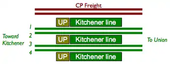 - ↑ Daniel Garcia and Sean Marshall. "GO Transit's Kitchener Line". Transit Toronto. Retrieved October 23, 2014.