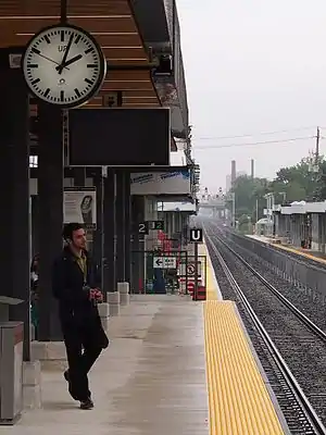 Weston GO Station is a train station in Toronto, Ontario, serving the GO Transit Kitchener line and the Union Pearson Express.[1] It is located on the south side of Lawrence Avenue West, just east of Weston Road,[1] in the neighbourhood of Weston.