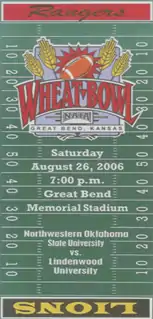 The Wheat Bowl was the only National Association of Intercollegiate Athletics endorsed pre-season bowl game that operated from 1995 until 2006. The Wheat Bowl Football Classic was headquartered in the Central Kansas town of Ellinwood and was played in nearby Great Bend annually as the kickoff for the NAIA season.[3]