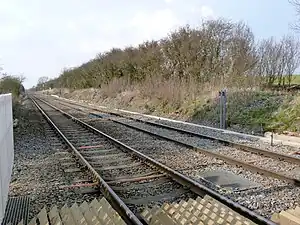 Whissendine railway station was a station serving the villages of Whissendine in Rutland and Wymondham and Edmondthorpe in Leicestershire. The station itself was about one and a half miles from each, and was in Leicestershire. It opened in 1848 on the Syston and Peterborough Railway and was originally named Wymondham but by 1863 it had been renamed Whisendine (with one s).[2][3]