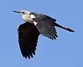 The white-necked heron is found throughout most of the Australian continent, commonly residing in wetlands, tidal areas, shallow fresh waters, farm dams, claypans, pastures and runoff water in roadside ditches.[5] The species has thrived following the construction of irrigation, dams and other man-made water sources.[2]