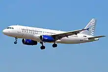 White Airways S.A. (also known as White) is a Portuguese charter airline headquartered in Porto Salvo, Oeiras.[2] It mainly operates charter flights from Lisbon Humberto Delgado Airport on behalf of tour operators as well as on lease on behalf of other airlines.