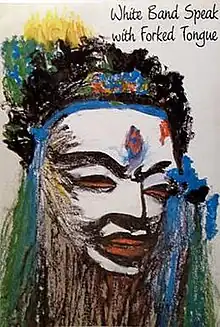 White Band Speak with Forked Tongue is the sixth studio album by the band Suns of Arqa, recorded with Sprout Head Uprising and released in 1989 by BOP Cassettes.[1] The album was produced by Suns of Arqa founder Michael Wadada. It is a compilation of previous singles, album tracks, new material, cover versions and collaborations. It was released only on cassette in 1989, and many of the tracks were re-issued on the 2018 album Pressure Drop, a tribute to the great Lizard Logan.[2] The style of the album is a radical departure from previous albums, particularly with the more pop-oriented vocals, and the use of Hammond organ, saxophones and trombones.