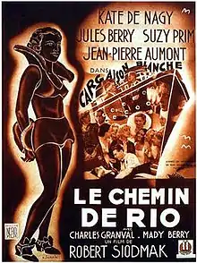 Cargaison blanche or Le Chemin de Rio (English literal translation: White Cargo or The Road To Rio) is a 1937 French crime film directed by Robert Siodmak and starring Käthe von Nagy, Jules Berry and Suzy Prim.[1] in which two journalists go on the trail of gangsters who are kidnapping women to sell in South America. The film was made by Nero Film, with sets designed by the art director Lucien Aguettand.