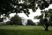 It was removed by President Richard Nixon.[3] The putting green was reinstalled by President George H. W. Bush in 1991.[4] However President Bill Clinton moved it to its current location just south of the Rose Garden, a short walk from the Oval Office.[1] Robert Trent Jones Jr. recreated the putting green for Clinton in 1995. The work was funded by donations of time and machinery and required no public funds. It is on the same site of Eisenhower's original green.[1]