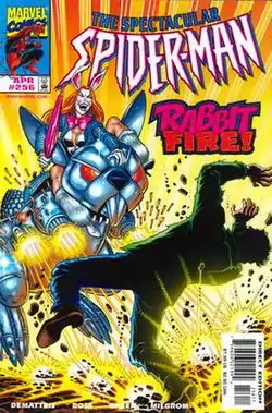 White Rabbit (Dr. Lorina Dodson) is a supervillainess appearing in American comic books published by Marvel Comics. Created by J.M. DeMatteis, Kerry Gammill, and Mike Esposito, the character first appeared in Marvel Team-Up #131 (July 1983).[1] White Rabbit is a wealthy criminal who based her supervillain persona on Alice in Wonderland.[2][3] She is a recurring antagonist of the superhero Spider-Man.[4][5][6]