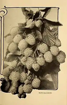 The white blackberry is an unusual white variety of blackberry developed by plant breeder Luther Burbank,[1] also known as the iceberg white blackberry or snowbank berry, probably originating as a pun on the name "Burbank".