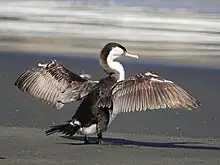 A kāruhiruhi (Australian pied cormorant) at Whites Beach
