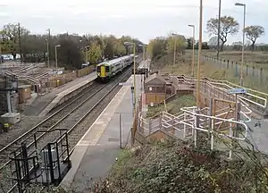 Whitlocks End railway station is a railway station on the North Warwickshire Line located next to, and named after the hamlet of Whitlock's End in the West Midlands of England. It lies a short distance from several villages: Tidbury Green and the new village of Dickens Heath in the West Midlands, and Major's Green and Hollywood in Worcestershire. The station, and all trains serving it, are operated by West Midlands Trains.