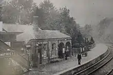 Whitwick railway station served the village of Whitwick, Leicestershire, England. It was built by the Charnwood Forest Company, serving the Charnwood Forest Railway, and was officially opened with the rest of the completed line on 16 April 1883. Following the closure of passenger traffic (aside from a few specials and other organised events) in 1931, the station building became a blacksmiths. Following total line closure in 1963, the history of the building is more difficult to chart. However, it is apparent that the waiting rooms and other facilities on platform level were demolished. In the mid-1970s the Whitwick Historical Group was created, with the old station building becoming their home.[3]
