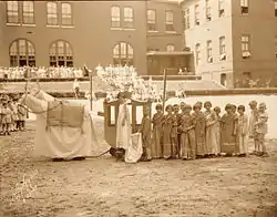 In August 1878, local freemasons laid the cornerstone for a new brick building at the college, into which a time capsule was placed. Both U.S. Senator from Mississippi Lucius Quintus Cincinnatus Lamar II and Jefferson Davis were expected to attend the ceremony but were "unavoidably absent."[5]
