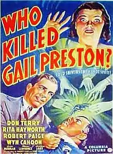 Who Killed Gail Preston? is a 1938 American crime film directed by Leon Barsha and starring Don Terry, Rita Hayworth, and Robert Paige.[1]