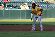 Infielder Alex Jackson leads off second base during a Fall 2018 exhibition game