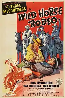 Wild Horse Rodeo is a 1937 American Western film directed by George Sherman and starring Robert Livingston, Ray Corrigan, and Max Terhune. Written by Oliver Drake and Betty Burbridge, based on a story by Drake and Gilbert Wright, the film is about a champion rodeo rider who returns to his home town in search of a legendary wild horse called Cyclone. The film is part of the Three Mesquiteers series of B-movies produced by Republic Pictures.[1] Wild Horse Rodeo was the first film directed by George Sherman, who later directed numerous Western films for Republic, Columbia Pictures, and Universal Pictures.[2]