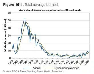 - ↑ "Total Burn Acreage 1916-2010".Data Published by the United States Department of Agriculture ()