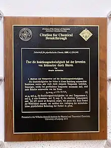 - 2018, Citations for Chemical Breakthrough Award from the American Chemical Society for the work of Svante Arrhenius on his Arrhenius equation, carried out and published at the Wilhelm Ostwald Institute in 1888/89.[18][19]