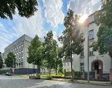 Bonhoeffer was followed by Herbert Staude as director of the institute from 1947 to 1959.[1] He had studied in Leipzig himself, had been an assistant to Max Le Blanc between 1925 and 1931, and now returned to Leipzig after several other positions. As director, he also oversaw the construction of the north wing of the Physico-Chemical Institute at Linnéstraße 2, in which he was particularly supported by the janitor of the time, Max Schädlich. From 1952, the institute had a lecture hall with 136 seats, three practical rooms, 24 laboratories, as well as a workshop and administrative rooms. In 1959, the institute again had 41 employees, 18 of whom were scientists.[1] Research at this time was mainly concerned with photochemistry (e.g. the photochemical properties of silver halides and other light-sensitive substances), thermochemistry (e.g. thermodynamic functions of inorganic substances or heats of mixing in liquid systems), electrochemistry (especially electrode processes), colloid chemistry and X-ray spectroscopy. Studies of exchange adsorption were carried out in an affiliated department.[1]