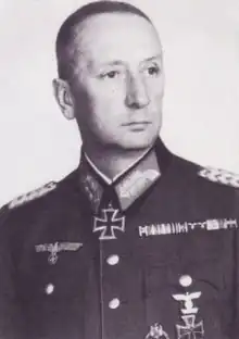 In September 1941 and now a generalmajor,[Note 1] Apell was appointed commander of the newly raised 22nd Panzer Division.[1] Formed in France, much of the division's equipment was captured and foreign equipment with relatively few modern tanks. With its training completed, the division was transferred to the Eastern Front in February 1942. Apell led the division through the Battle of the Kerch Peninsula[5] until July 1942, when he became ill and was replaced.[1]