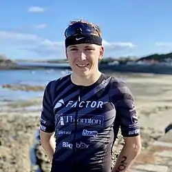 During his first year of triathlon Will won the English Triathlon Championships in 2019[2] and later went on to represent the Isle of Man at the 2019 Island Games for triathlon where he won individual silver[16][17] and team bronze[18] and also competed in the 5 km run on the track where he finished 4th.[19] During 2020 Will competed away from home twice. Firstly in the Rocquaine Olympic distance triathlon in Gurnsey where he won by over 8 minutes [20][21] and secondly at the Outlaw X middle-distance triathlon where he finished 7th [22] and this (according to his own social media [23]) is where he earned his professional license. With the return of more races in 2021 Will began his professional debut season by competing in the PTO supported Eton Dorney triathlon.[3] Several weeks later he competed at the again PTO supported Outlaw Half Holkham where he finished 4th.[24] Will made his first international appearance as a professional triathlete at the Challenge Davos event in Switzerland where he finished 5th.[25] Will has also competed in off-road triathlon events having won the Isle of Man Granite Mann on several occasions and holding the current course record.[26] Will is currently sponsored by international bike manufacturing company Factor Bikes and says the partnership has allowed him to focus more on swimming and running.[27]
