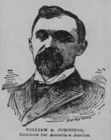 William Agnew Johnston (July 24, 1848 – January 23, 1937[1]) was a Kansas State Representative in 1875, Kansas State Senator, justice of the Kansas Supreme Court from December 1, 1884, to January 12, 1903, and chief justice from January 12, 1903, to June 30, 1935.[2][3]
