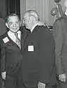 Photograph of William Amory Underhill (center right) with then U.S. House Speaker Carl Albert (on left) in 1976. Courtesy of Carl Albert Center, University of Oklahoma.
