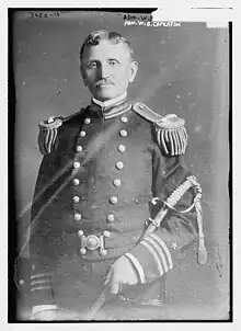 William Banks Caperton (June 30, 1855 – December 12, 1941) was an admiral of the United States Navy. He held major posts ashore and afloat, chief of which were commanding the naval forces intervening in Haiti (1915–16) and Santo Domingo (1916), and Commander-in-Chief, Pacific Fleet, from July 28, 1916, to April 30, 1919. He served actively until November 12, 1921.