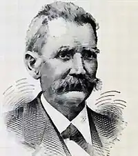 Following his wife's death William Napton moved to St. Louis, Missouri and once again took up his law practice.[6] Most of his journals and personal papers from the era were destroyed later, so little is known of Napton's activities during the Civil War period. Two of his sons did however serve with Confederate forces. Arrested by Federal troops in St. Louis, he was not allowed to begin his law practice until he swore the loyalty oath that had cost Napton his Supreme Court position. This time, with his wife dead, Saline County farm in ruins, and nearly bankrupt Napton reluctantly agreed.[1] His law practice in St. Louis proved lucrative by the late 1860s, and he again found himself involved in state politics. This led, in June 1873 to Napton's third and final appointment to the Missouri Supreme Court.[6] Initially appointed to fill the term of Justice Ephraim B. Ewing, who died suddenly, Napton was elected to the court in his own right the following year by over fifty thousand votes.[1] His health increasingly poor, Napton retired from the court rather than run for another six-year term in 1880.[2]