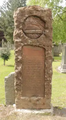He died in Edinburgh on 8 December 1961 and is buried with his father in the Grange Cemetery.[11] The grave lies not far from the main entrance on the right hand side of the first north-south path.