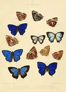 William Chapman Hewitson (9 January 1806, in Newcastle upon Tyne – 28 May 1878, in Oatlands Park, Surrey) was a British naturalist.[1] A wealthy collector, Hewitson was particularly devoted to Coleoptera (beetles) and Lepidoptera (butterflies and moths) and, also, to birds' nests and eggs. His collection of butterflies, collected by him as well as purchased from travellers throughout the world, was one of the largest and most important of his time.[1][2] He contributed to and published many works on entomology and ornithology and was an accomplished scientific illustrator.