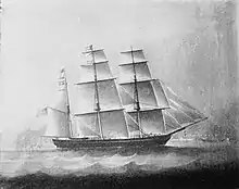 Following the loss of Tejuca, Gregory assumed command in 1857 of the 360-ton bark Albers,[2] built in Topsham, Massachusetts, in 1844, and owned by Bush & Wilder of Boston.[15] Taking charge of the vessel at that city, Gregory sailed her to Charleston, South Carolina, then to Buenos Aires, Argentina; Montevideo, Uruguay; and Patagonia, before returning to Baltimore.[2] From there, he took the ship to China via Hong Kong,[2] where she was sold for $4,000 (equivalent to $130,000 in 2022); he nonetheless remained in command.[16] His next port of call with Albers was Whampoa, "where he was violently ill",[16] but after recovering he took the vessel on to Canton and Swatow, when she was again sold, with Gregory again remaining in command. In September 1860, Albers departed Sigua with a cargo of rice bound for Manila. Here Gregory left the vessel and returned to San Francisco in another ship, arriving April 4, 1861.[16]