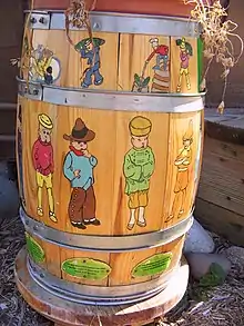 The Teenie Weenies is a comic strip created and illustrated by William Donahey that first appeared in 1914 in the Chicago Tribune and ran for over 50 years.[1][2][3] It consisted of normal-size objects intermingled with tiny protagonists.[1] The comic strip characters were two inches tall[1][2] and lived under a rose bush.[3] They lived with "real world" size materials made from discarded objects like hats, jars, barrels, kegs, and boxes – all of which were gigantic to them.[3]