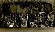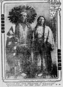 When The Sun Dance first played in Utah in 1913, first in Vernal and then later in Provo, it played eleven consecutive times.[10] It later played in Salt Lake City and then on Broadway in 1937.[11] It was a collaborative work between Hanson and Gertrude Bonnin, also known as Zitkala-Sa.[12] It consists of five acts depicting the "hopes, disappointments, and beliefs" of Native Americans.[13] The characters in the opera are Sioux, the actual sun dance ritual was historically Lakota, Hanson's contributions were inspired by the Ute people, and Zitkala-Sa herself was Lakota, raised on a Sioux reservation.[7] The opera features a love triangle between a Sioux warrior, a Sioux maiden, and a Shoshone.[12]