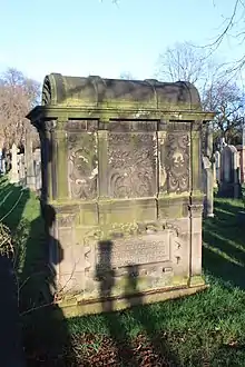 Sir William Fraser died on 13 March 1898, three months after his sister Ann, who had kept house for him since 1846. They share a highly unusual and ornate grave, designed by the architect Arthur Forman Paul,[1] in Dean Cemetery in Edinburgh just south of the northmost path in the north section of the original cemetery.