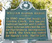 William H. Hardy (February 12, 1837 − February 17, 1917) was an American businessman who founded the Mississippi cities of Hattiesburg, Laurel, and Gulfport.