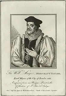 Sir William Harpur (c.1496 – 27 February 1574) was an English merchant and philanthropist who served as Lord Mayor of London in 1561. Born in Bedford, he moved to London and amassed a large fortune.[1] In 1566, Harpur and his wife Alice gave an financial endowment to support several charities including ones focused on education.[1] The endowment eventually became the Harpur Trust, which supports four independent schools in Bedford today.[1]